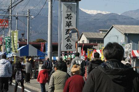 2/10 南アルプス市の十日市へ 昨年は暴力団対策で行なわれなかった メイン会場の瓦会館と小学生作成の瓦の展示