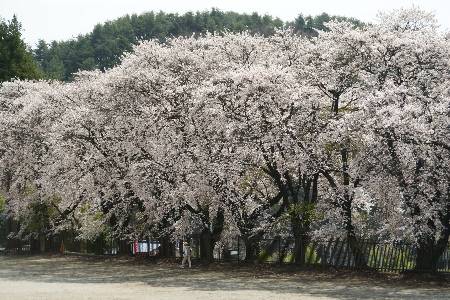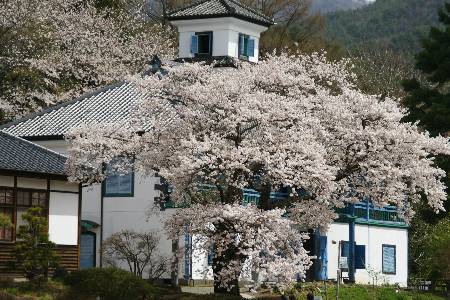 北杜市須玉町下津金の三代校舎ふれあいの里へ 明治、大正、昭和の校舎の中の桜が立派 今が満開だ
