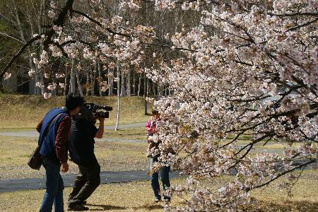 NHKの取材班が来ていた 中には入れないが立派な桜を撮影できる