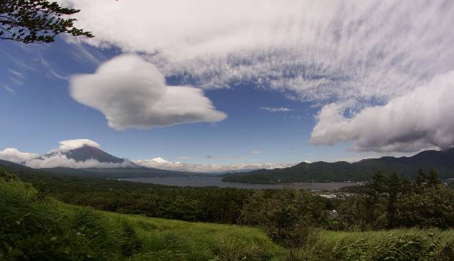 山中湖の雲の様子 パノラマ台に移動し、山中湖の全景の景色