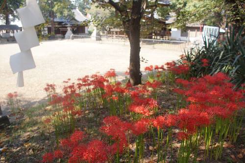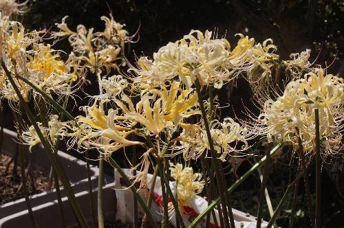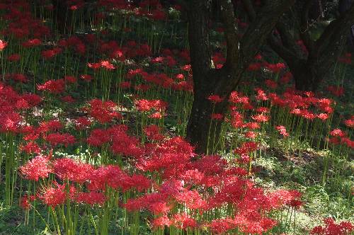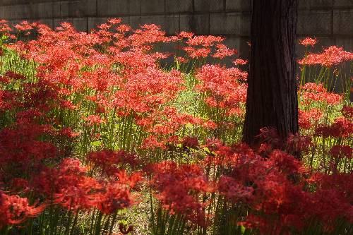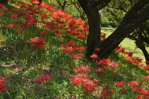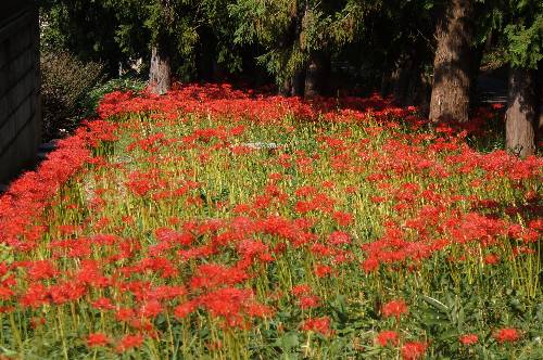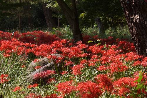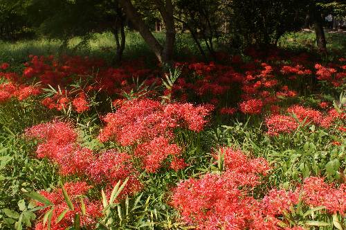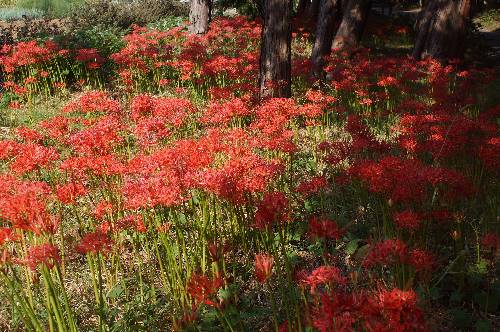 広い公園の一角に彼岸花の群生地がある。散歩しながらやっと見つけた
