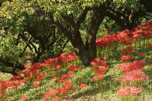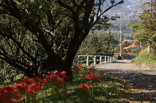 彼岸花の見所は50m上の桃畑に咲いている景色