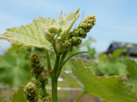 ブドウの実に花が咲きそうだ