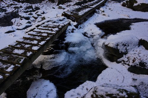 仙娥滝付近は、日陰の部分は道路も凍結している