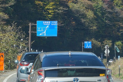 東北自動車道の白河ICに、紅葉を見ながら進む