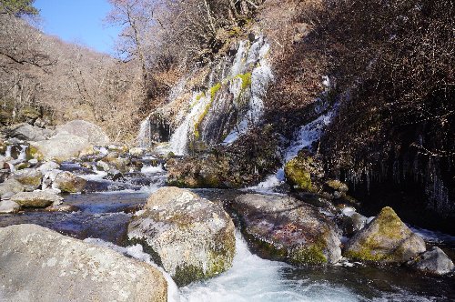 滝が凍り始めているがまだ物足りない