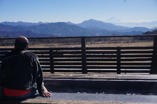 富士山を見ながら足湯の光景