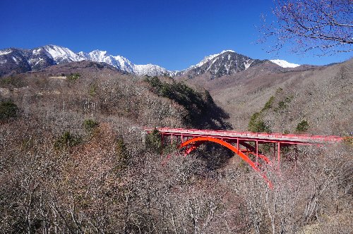 八ヶ岳高原大橋から甲斐駒ケ岳を見る