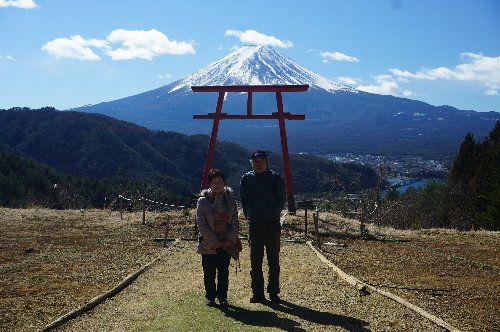車で移動し、少し歩くと河口湖富士山遥拝所へ