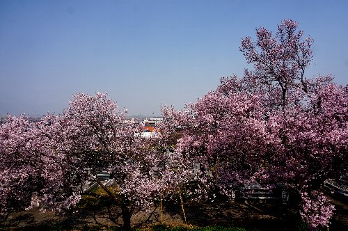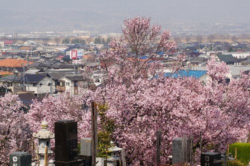 墓地の中の花桃を見る