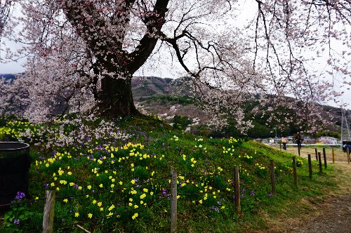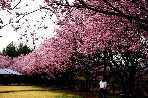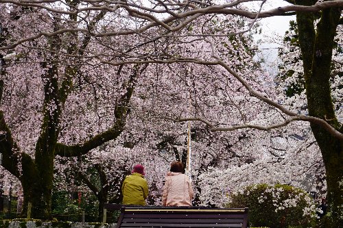 ここの桜は満開前はピンク色だが、散り始めると白くなるようだ