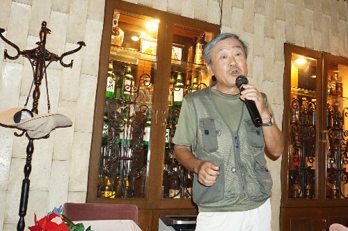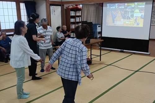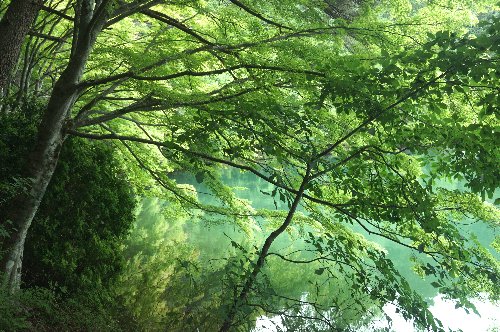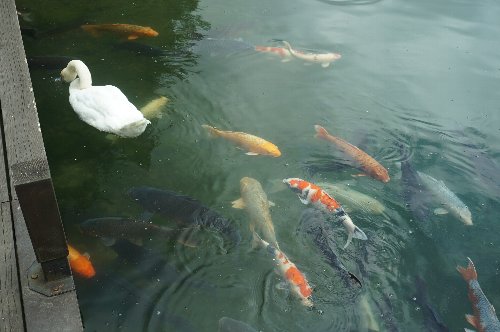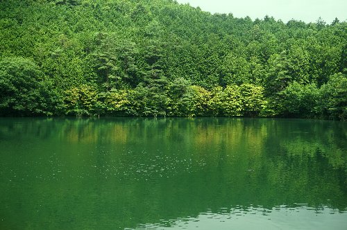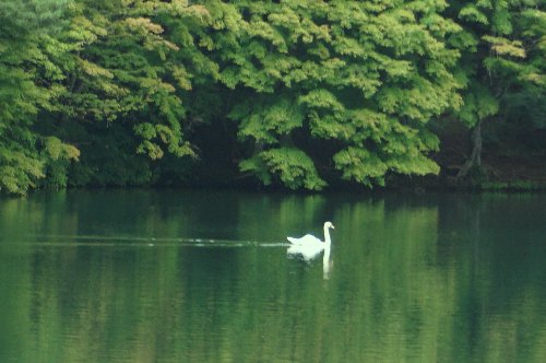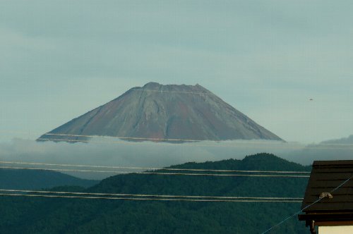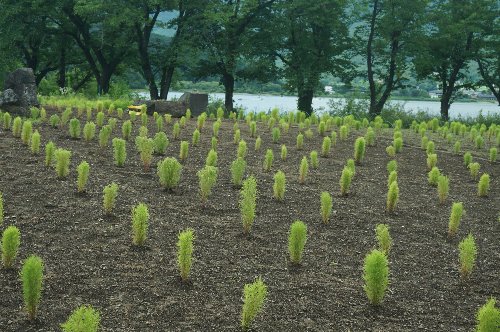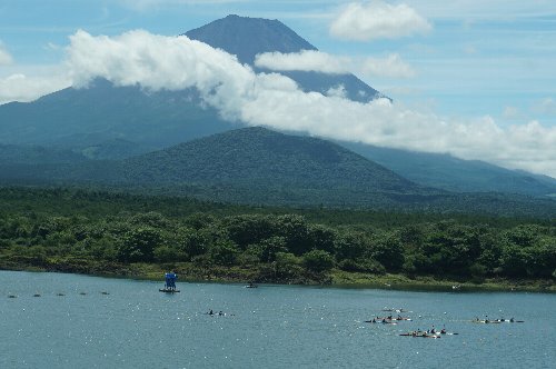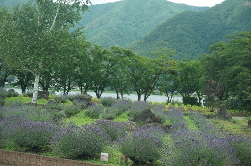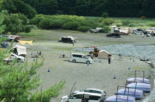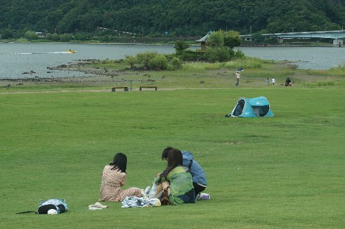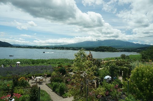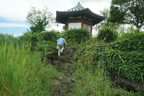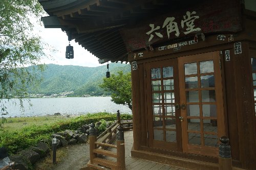 河口湖の水位が下がっているので、六角堂まで地続きだ