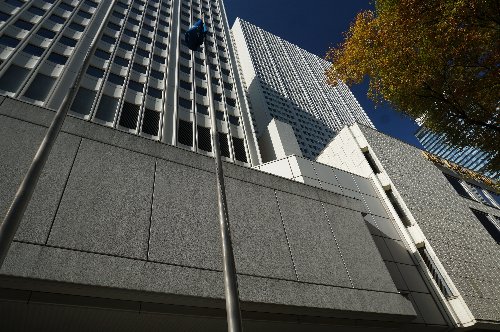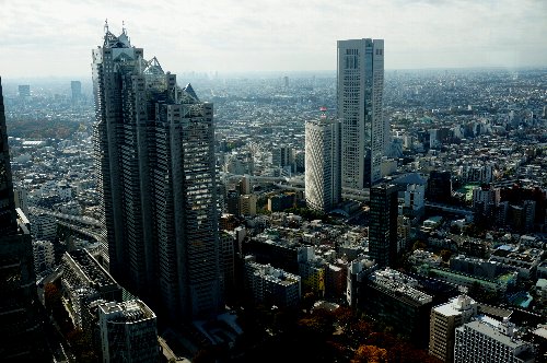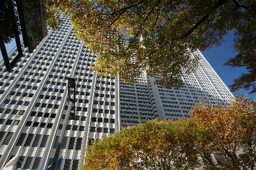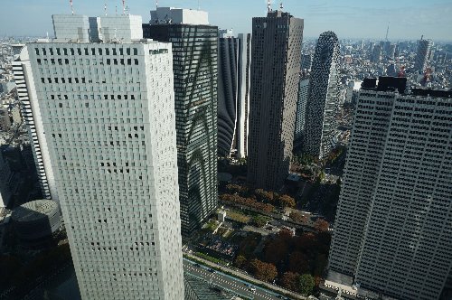 都庁北棟から南棟を見る