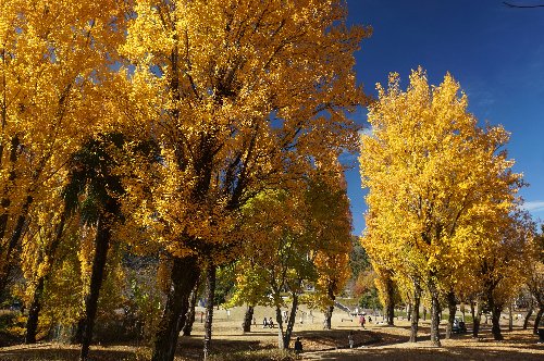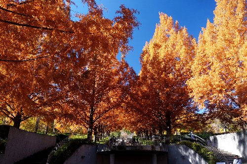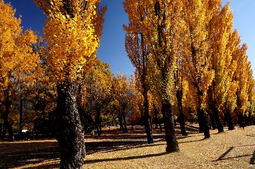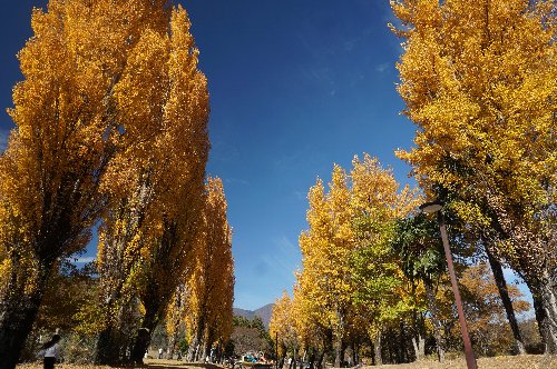 ポプラ並木の黄葉は見ごろだ