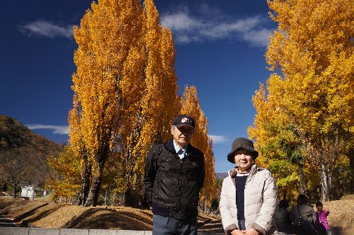 ポプラ並木に戻り、記念撮影